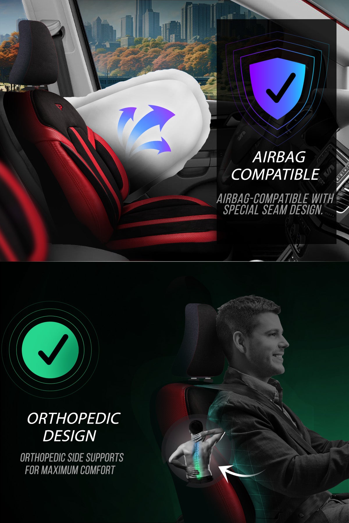 - Orthopedic Design: Reinforced side supports offer maximum comfort during long drives.