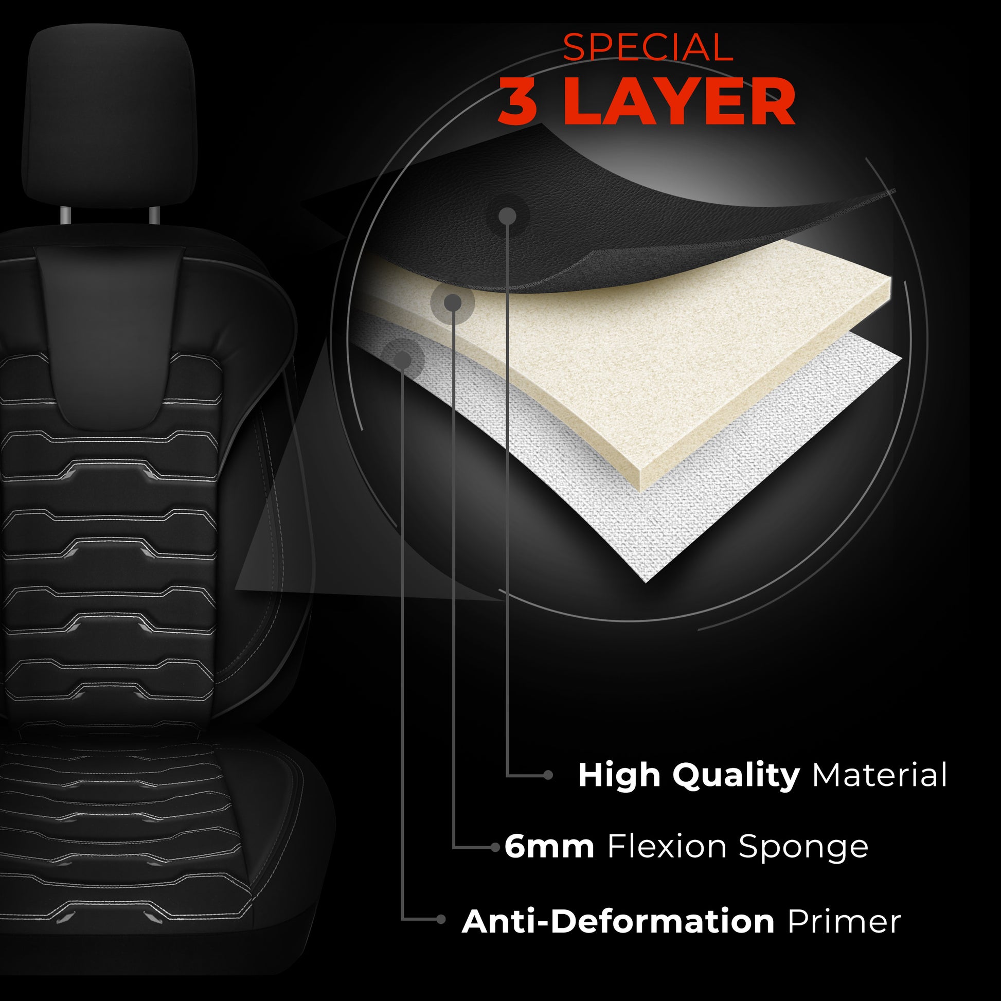 - 3-Layer Design: Leather surface + soft foam + anti-deformation lining